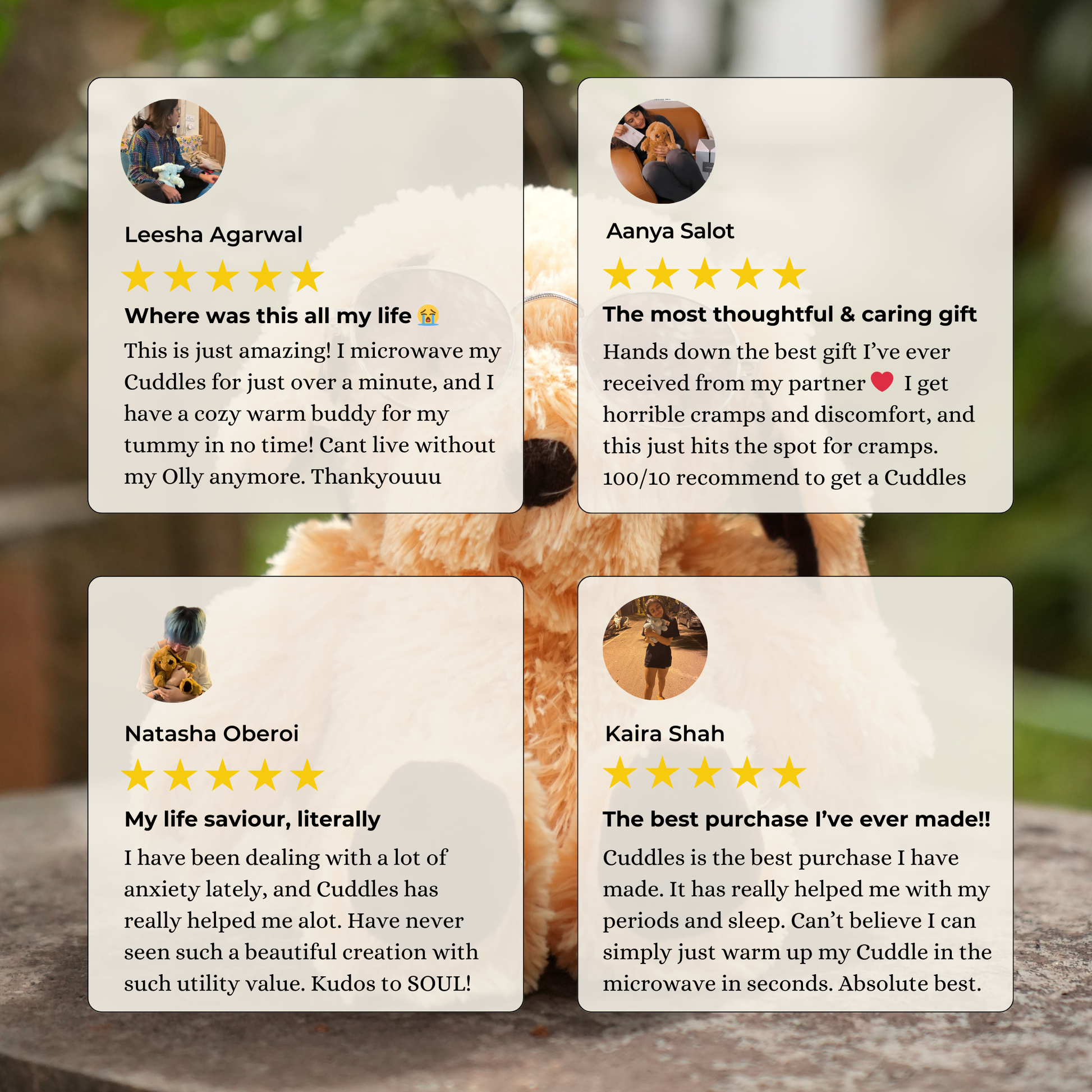 Unlike regular soft toys, Cuddles™ is a first-of-its-kind luxurious experiential plush toy that can be heated in the microwave or chilled in the freezer for various therapeutic benefits & soothing comfort.